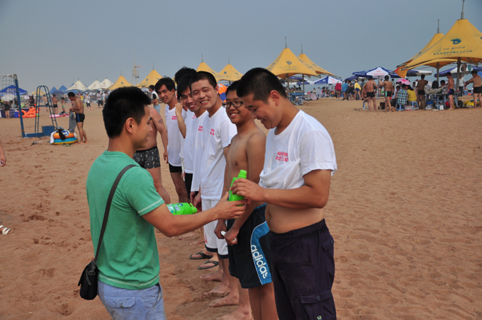 又是一年夏来到,为体现大连石材厂对员工的关爱、践行福利制度、增强员工体质、促进同事间的协作与友谊,大连棋盛石材于2013年8月10日举行了一年一度的海上休闲活动,此次活动参加员工160余人,与去年相比,快盈iii的员工队伍在不断的壮大,早上9:30分,大家统一穿着印有“快盈iii”字样的白色文化衫,在各部门领导的指挥下,兴致勃勃地列队站齐,等待“出发”号令的下达,旗手刘长峰英姿飒爽地挥动着红旗,展现了棋盛的精神面貌。
