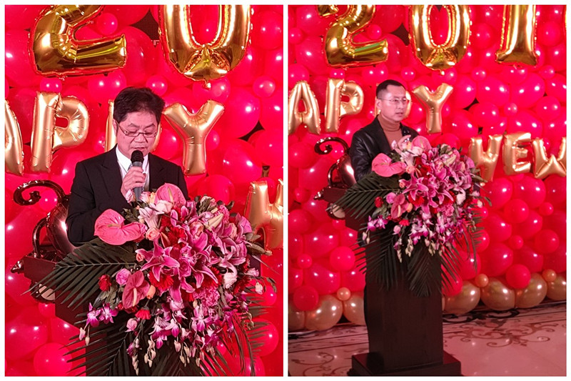 首先,公司董事长李百义先生致新春贺词。他说,紧张忙碌的2015年已经过去,公司在各级领导班子的带领下,在全体员工的努力下,取得了辉煌的销售成绩。在新的一年里,面临新的机遇和挑战,希望全体同仁再接再厉,圆满完成2016年的各项指标任务。最后预祝大家阖家欢乐,身体健康,万事如意。